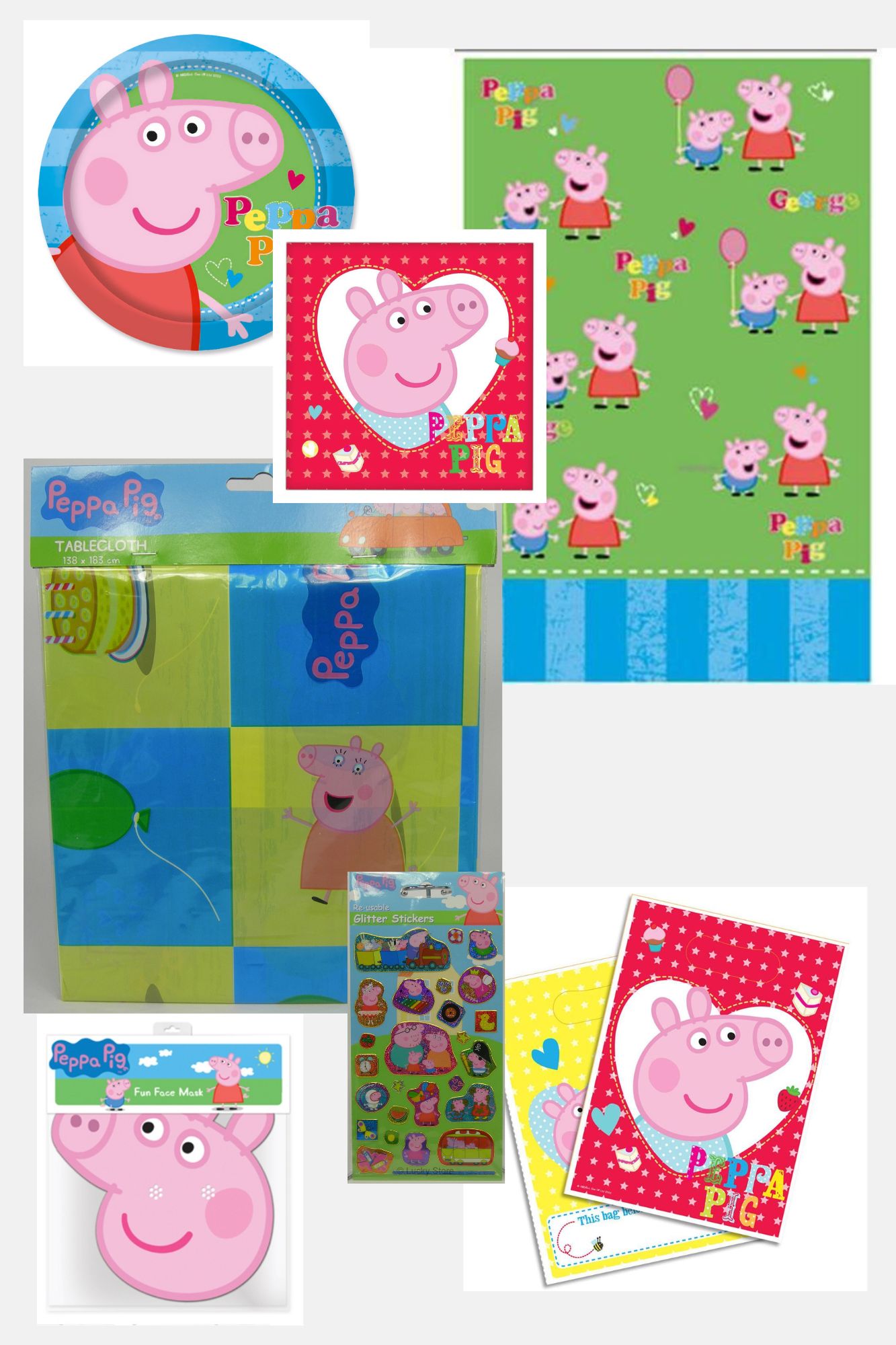 - 1 confezione contenente 6 maschere di peppa Pig in cartone